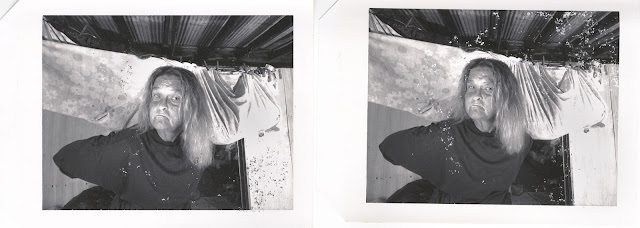 Contact sheet above from, 1992, "Bert with Jesus Picture's," After several 4x5 Polaroids were made I began exposing the above scanned 4x5 film, first I asked Bert to hold something that was close to him, something precious, we made a couple images with his guitar, then he just wanted to stand, followed by sitting in chair, the last sitting in chair photo was the one I selected to make a final print. In that photo Bert was joking with his niece about having his photo made. The last two images [far right] are what I call my community service work, making photos of family for their uses. I hope to find and post soon the original Polaroids first made.